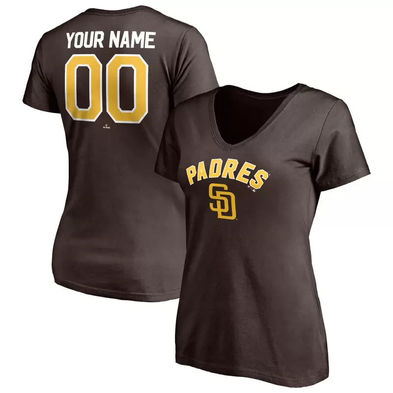 Women’s San Diego Padres Brown Personalized Winning Streak Name & Number V-Neck T-Shirt