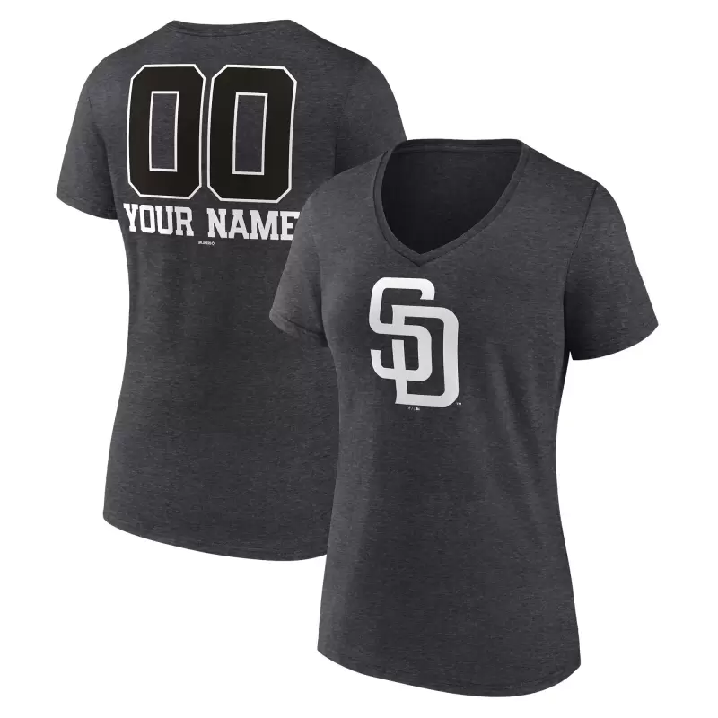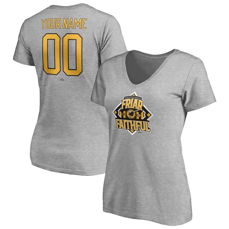 Women’s San Diego Padres Heathered Gray Hometown Legend Personalized Name & Number V-Neck T-Shirt