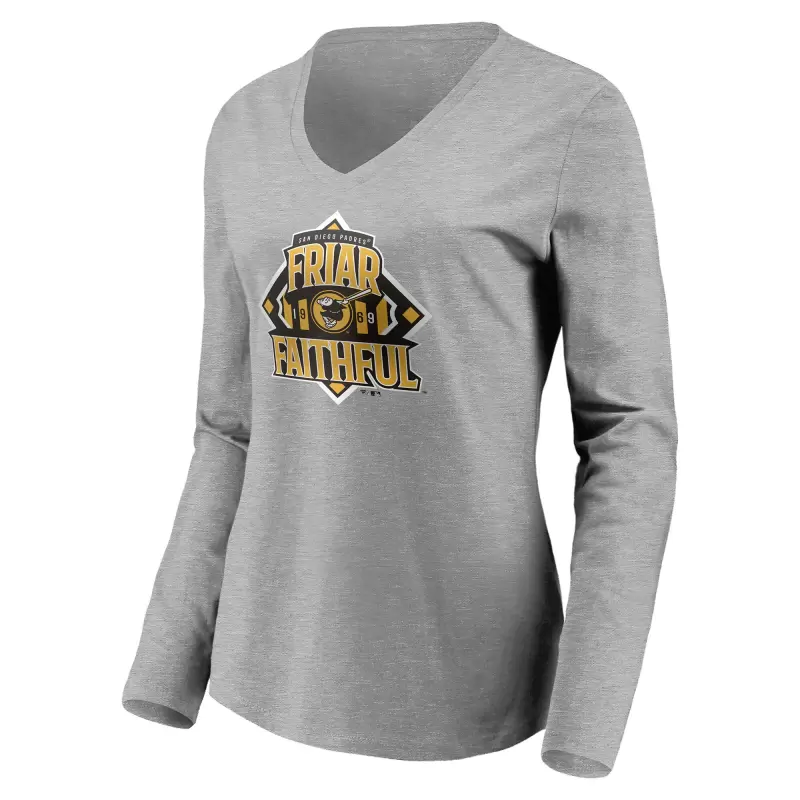 Women’s San Diego Padres Gray Personalized Hometown Legend Long Sleeve V-Neck T-Shirt