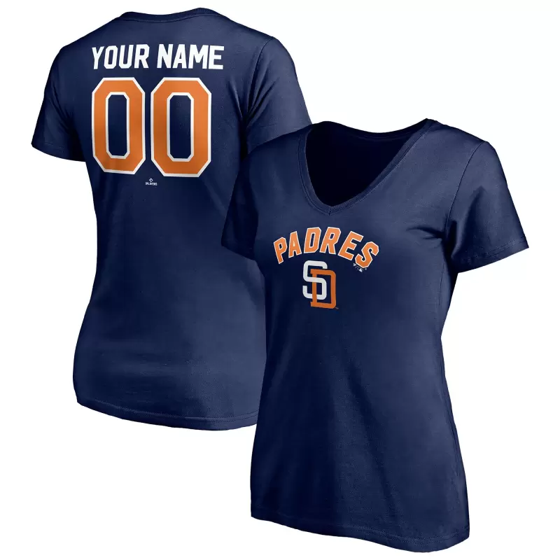 Women’s San Diego Padres Navy Cooperstown Winning Streak Personalized Name & Number V-Neck T-Shirt
