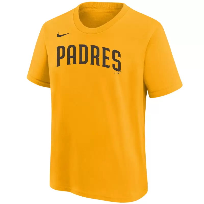 Youth San Diego Padres Jackson Merrill Nike Gold Player Name & Number T-Shirt