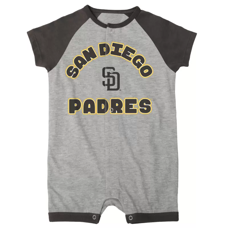 Infant San Diego Padres Heather Gray Extra Base Hit Raglan Full-Snap Romper