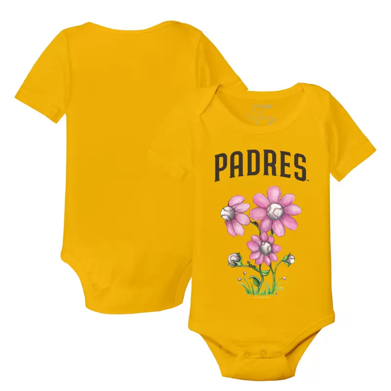 Infant San Diego Padres Tiny Turnip Gold Blooming Baseballs Bodysuit