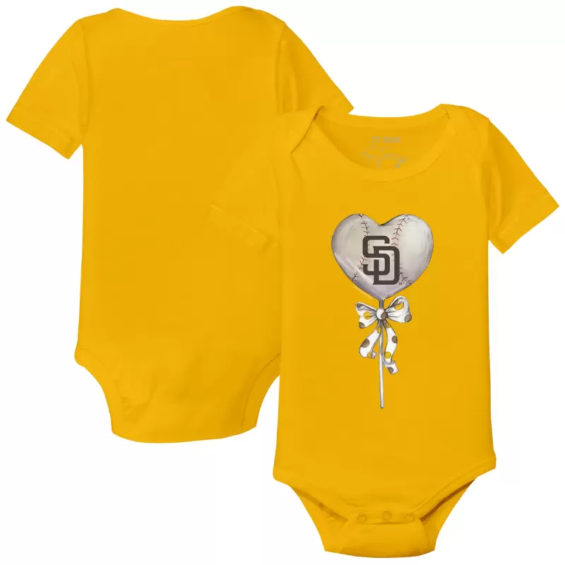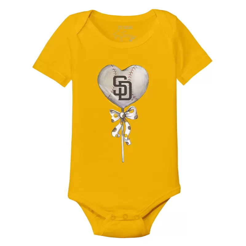 Infant San Diego Padres Tiny Turnip Gold Heart Lolly Bodysuit