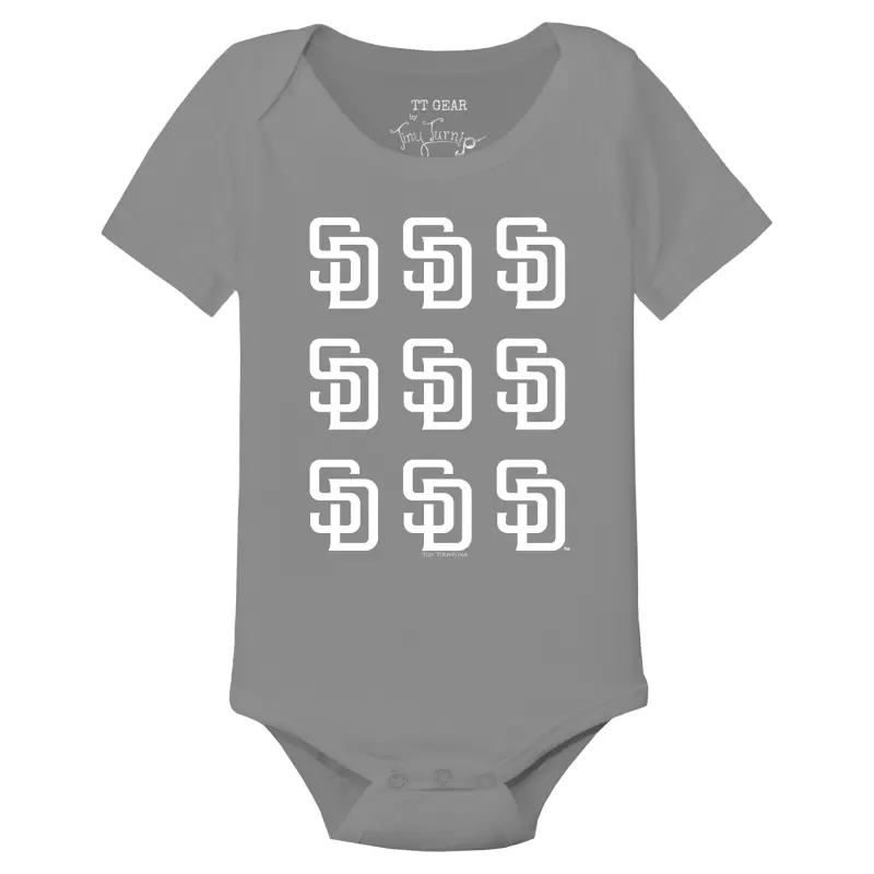 Infant San Diego Padres Tiny Turnip Gray Logo Grid Bodysuit
