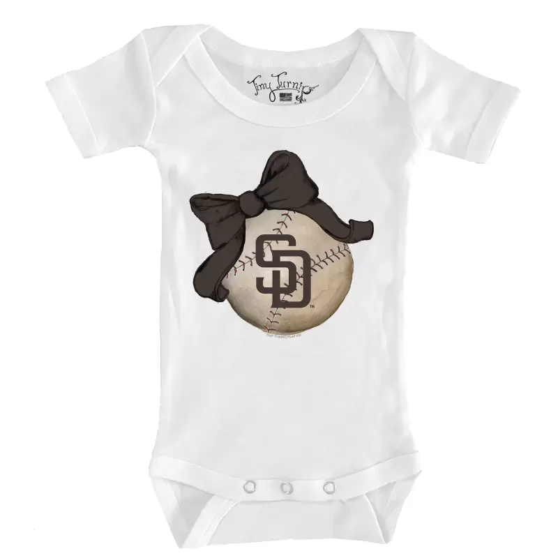 Infant San Diego Padres Tiny Turnip White Baseball Bow Bodysuit