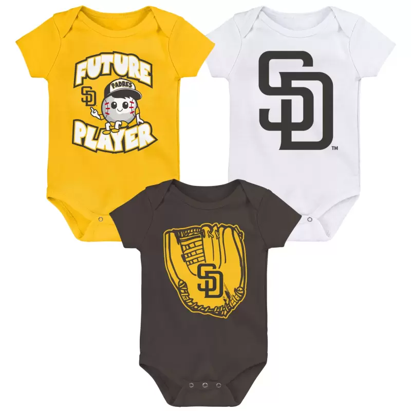 Newborn & Infant San Diego Padres Gold/Brown/White Minor League Player Three-Pack Bodysuit Set