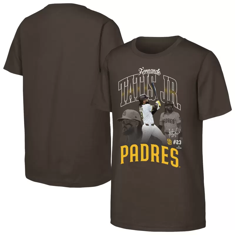 Youth San Diego Padres Fernando Tatis Jr. Outerstuff Brown Triple Player Graphic T-Shirt