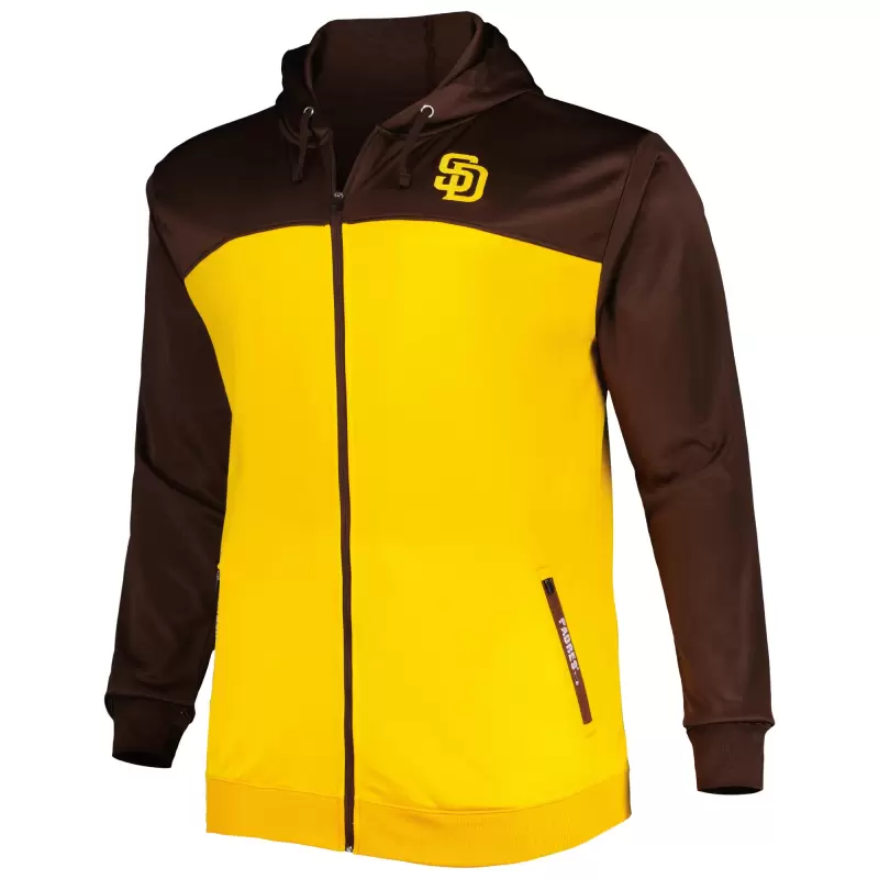Men’s San Diego Padres Brown/Gold Big & Tall Yoke Full-Zip Hoodie