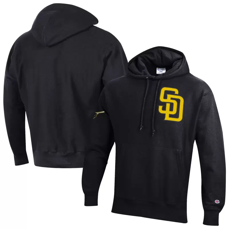 Men’s San Diego Padres Champion Black Reverse Weave Chenille Hoodie