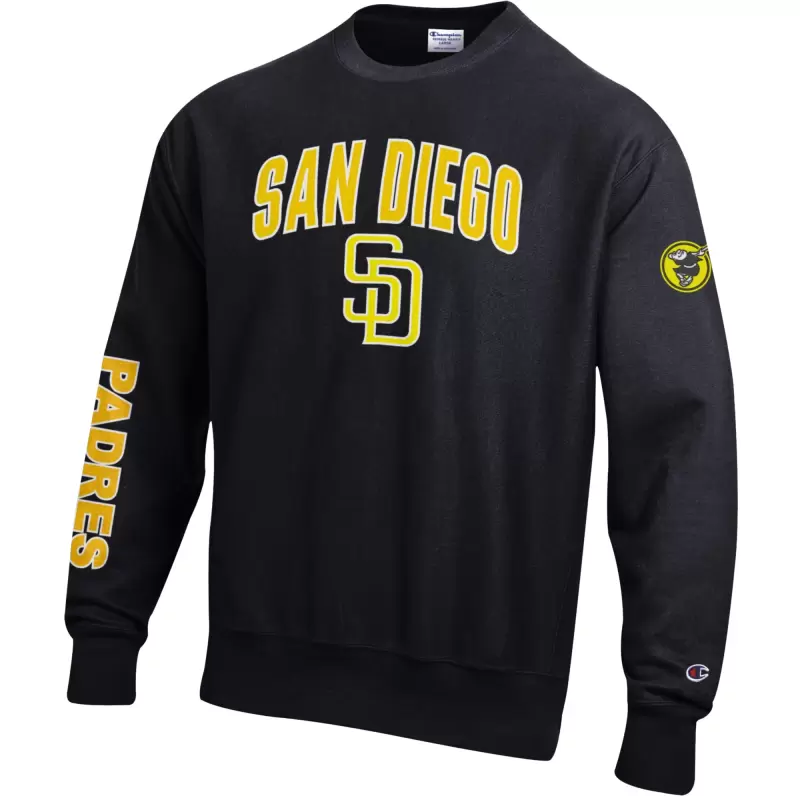 Men’s San Diego Padres Champion Black Reverse Weave Chenille Sweatshirt