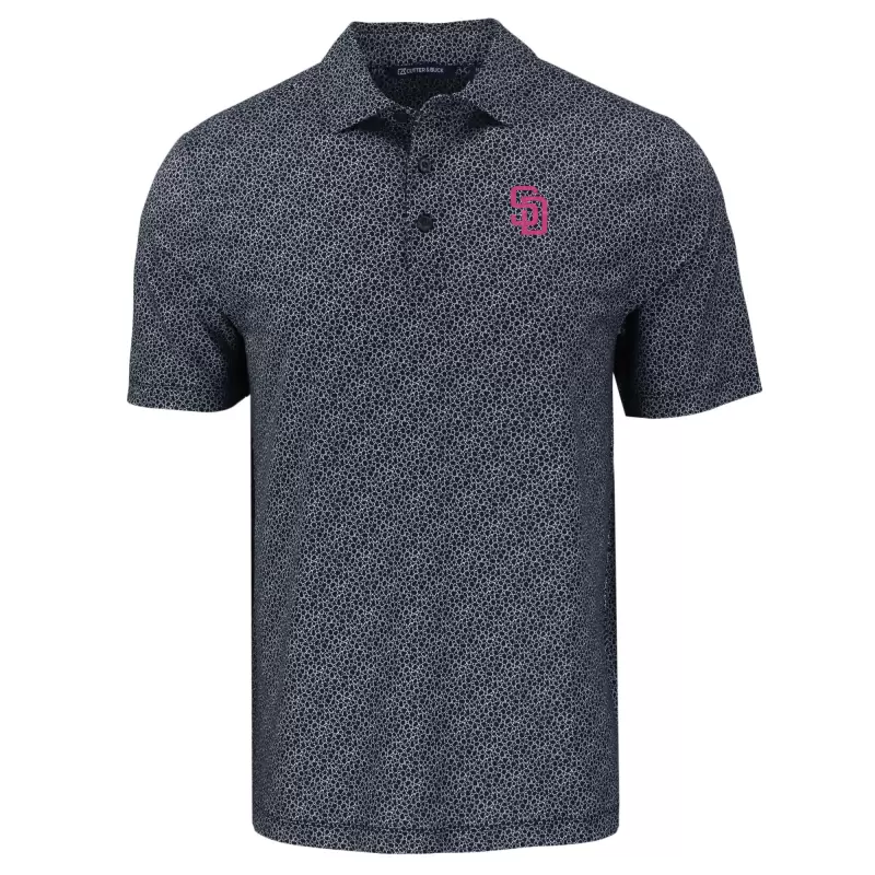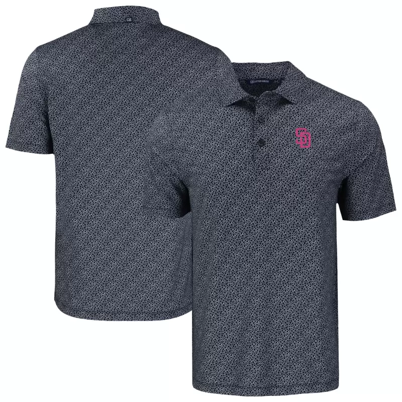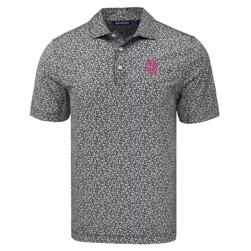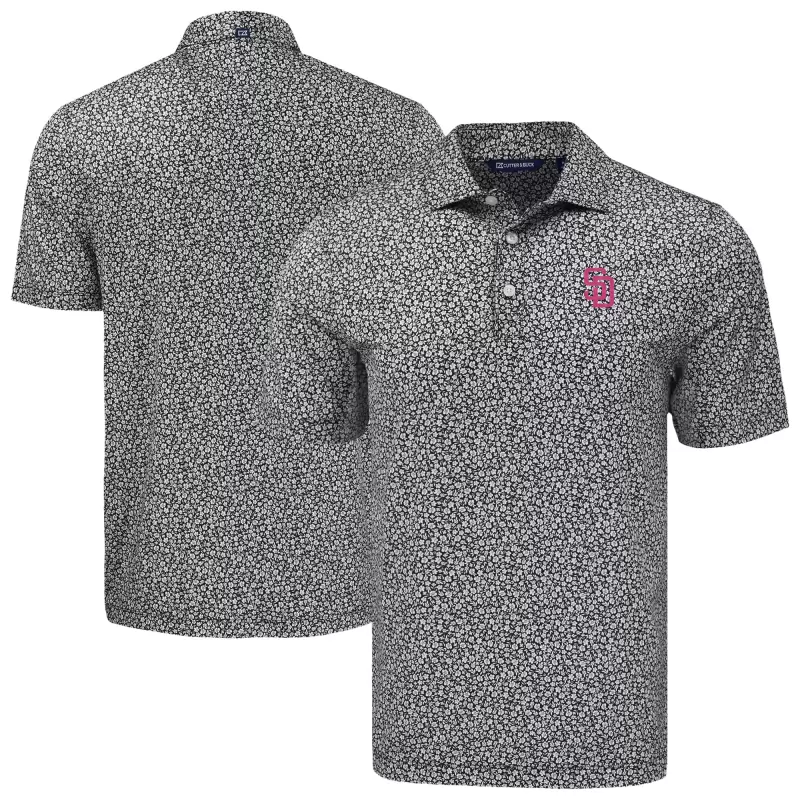 Men’s San Diego Padres Cutter & Buck Black Pike Eco Flora Print Recycled Polo