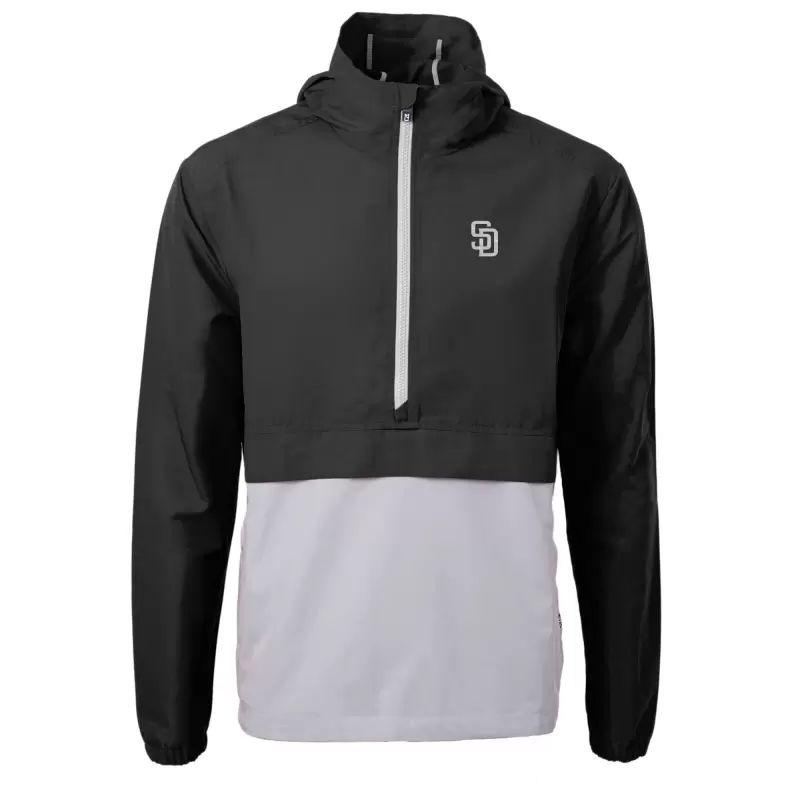Men’s San Diego Padres Cutter & Buck Black Charter Eco Recycled Anorak Half-Zip Hoodie Jacket