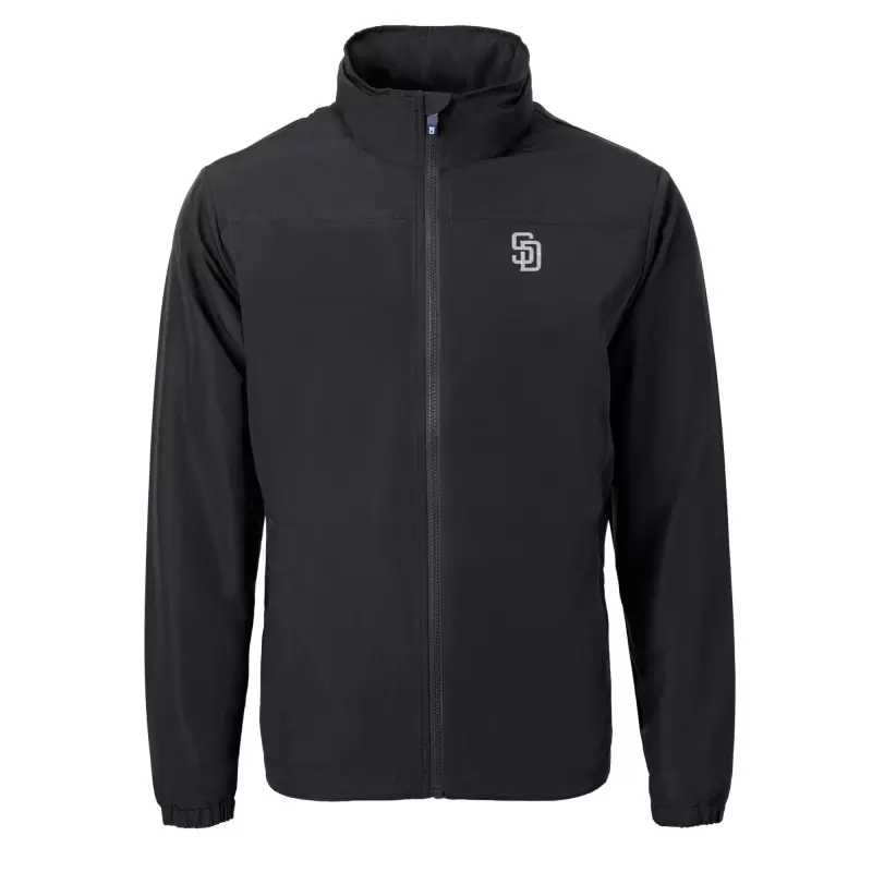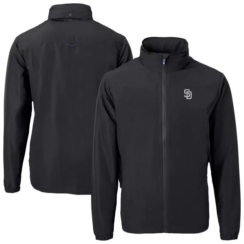 Men’s San Diego Padres Cutter & Buck Black Charter Eco Recycled Full-Zip Hoodie Jacket