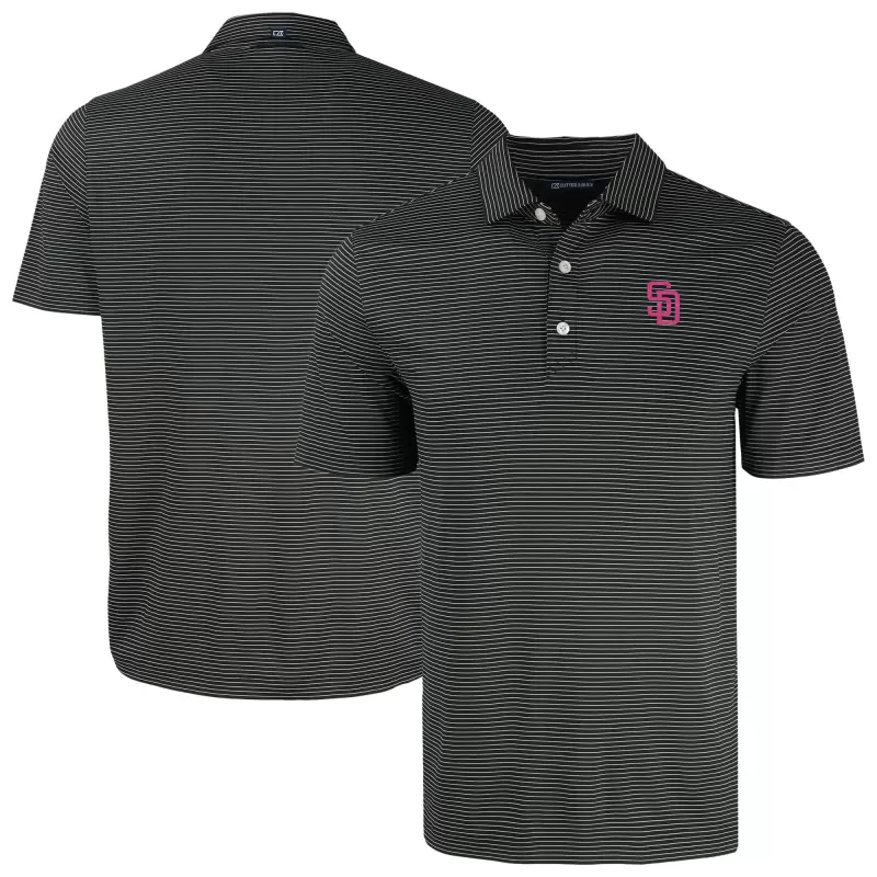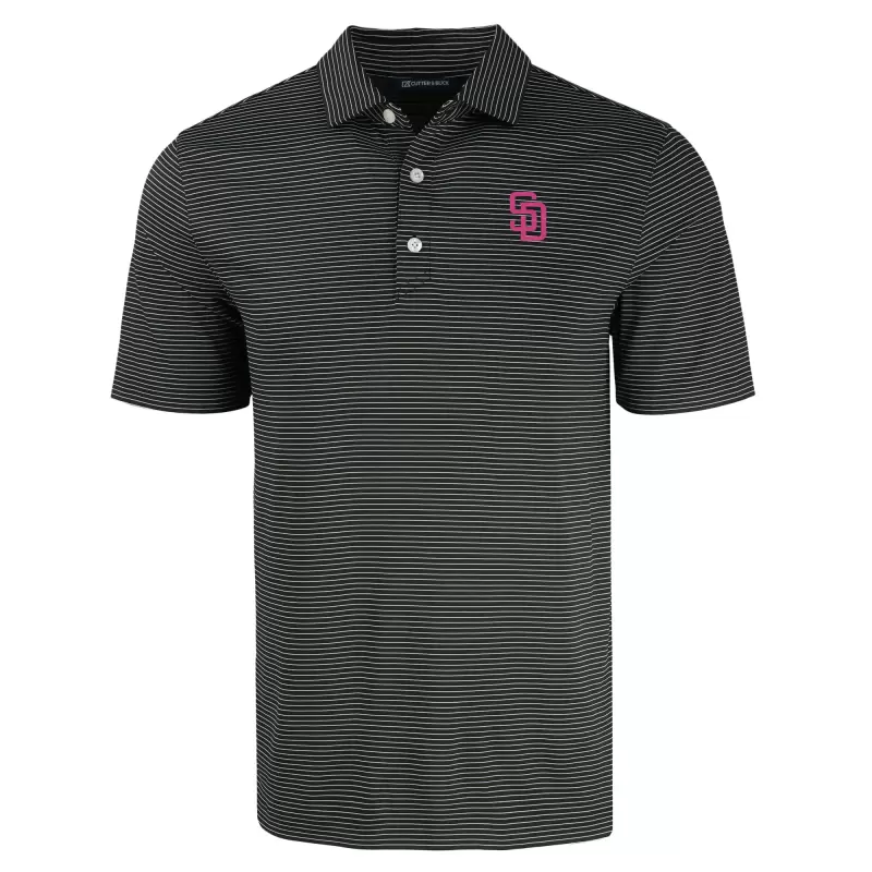 Men’s San Diego Padres Cutter & Buck Black Forge Eco Fine Line Stripe Polo