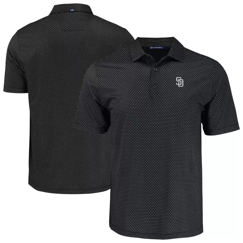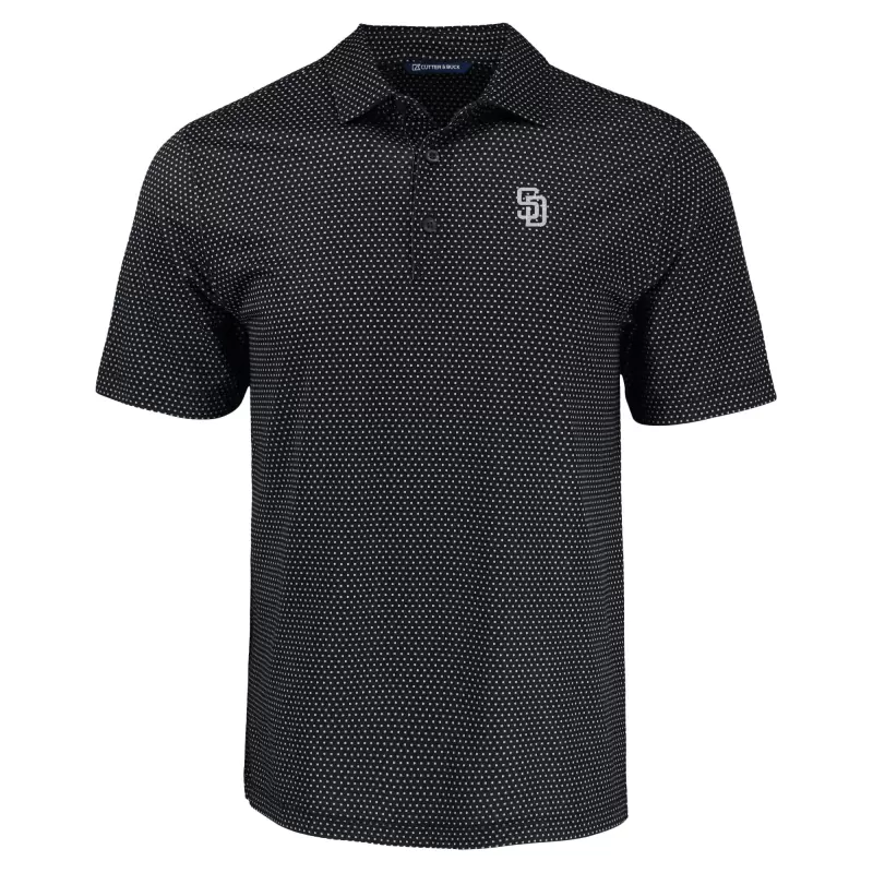 Men’s San Diego Padres Cutter & Buck Black Pike Eco Pebble Print Stretch Recycled Polo