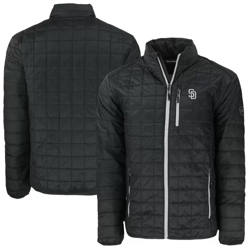 Men’s San Diego Padres Cutter & Buck Black Rainier PrimaLoft® Eco Insulated Full-Zip Hoodie Puffer Jacket