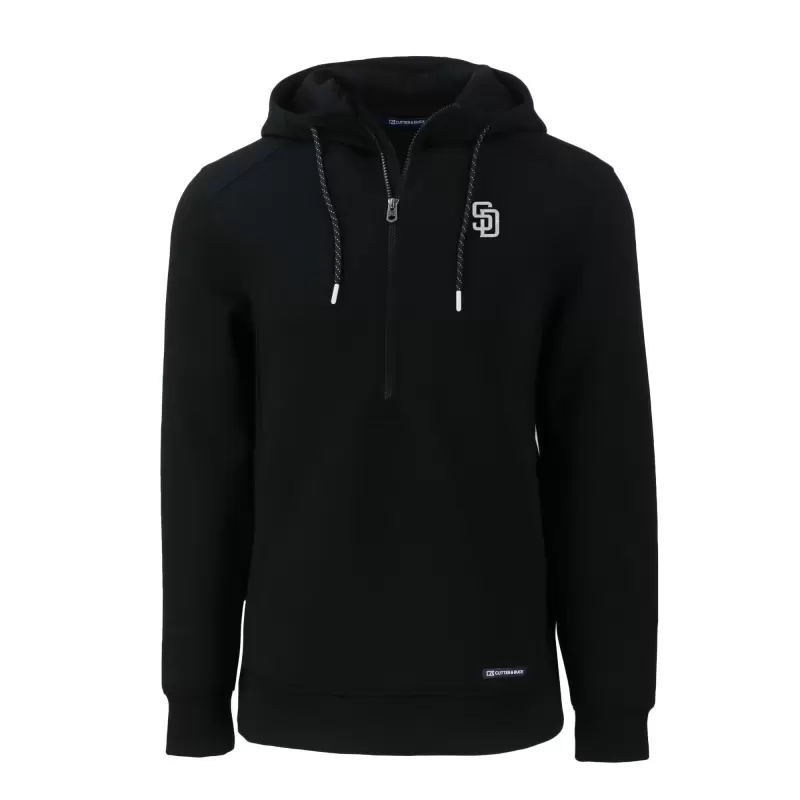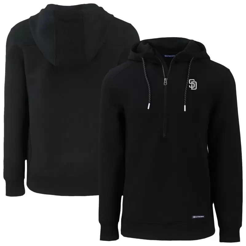 Men’s San Diego Padres Cutter & Buck Black Roam Eco Recycled Tri-Blend Half-Zip Hoodie