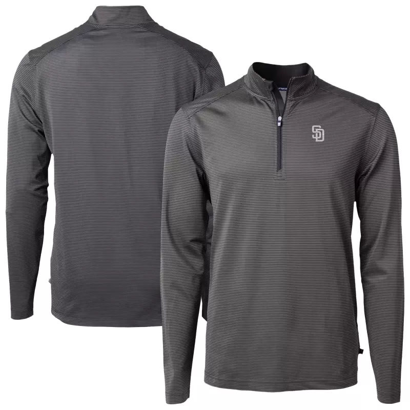 Men’s San Diego Padres Cutter & Buck Black Virtue Eco Pique Micro Stripe Quarter-Zip Jacket