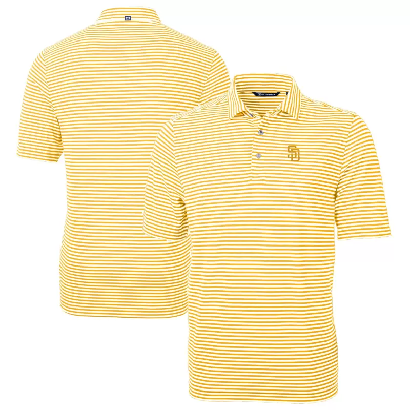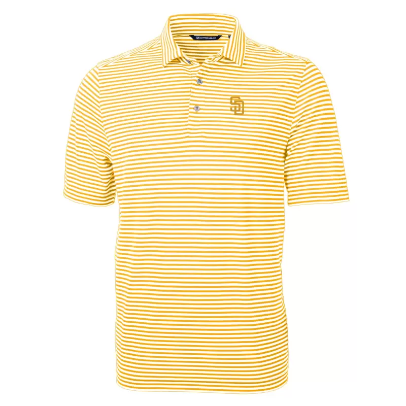 Men’s San Diego Padres Cutter & Buck Gold Virtue Eco Pique Stripe Recycled Polo