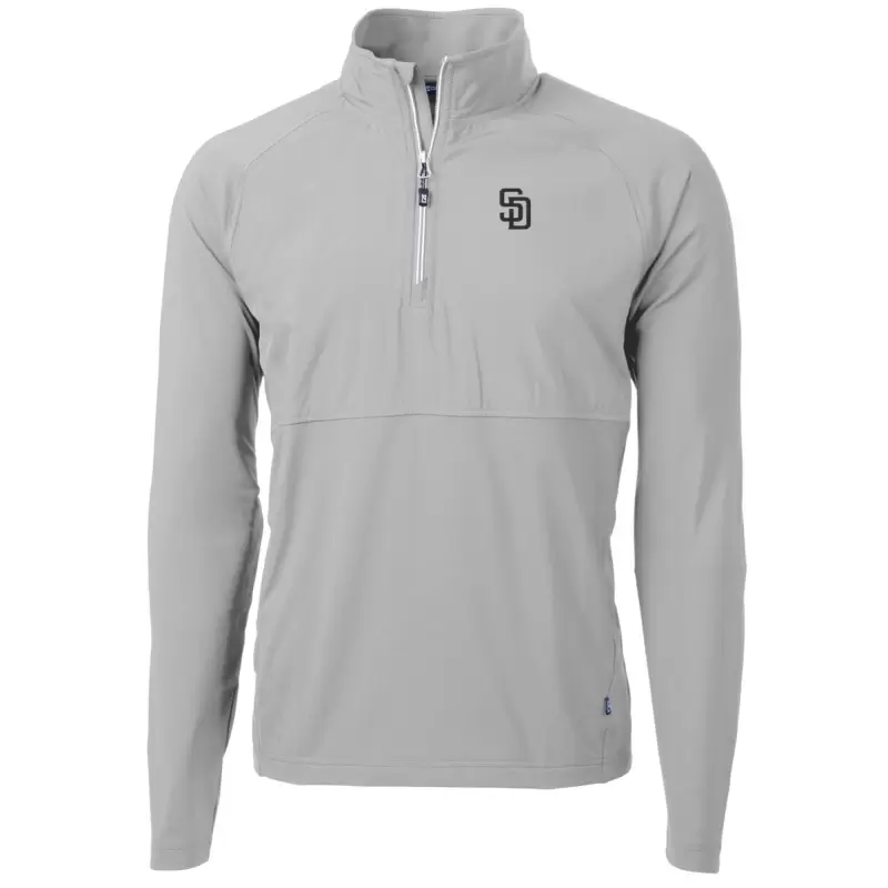 Men’s San Diego Padres Cutter & Buck Gray Adapt Eco Knit Hybrid Recycled Quarter-Zip Pullover Jacket