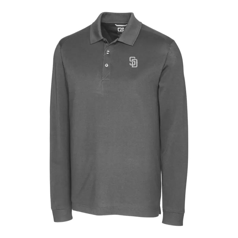 Men’s San Diego Padres Cutter & Buck Gray Advantage DryTec Tri-Blend Long Sleeve Polo