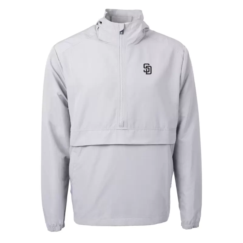 Men’s San Diego Padres Cutter & Buck Gray Charter Eco Recycled Anorak Half-Zip Hoodie Jacket