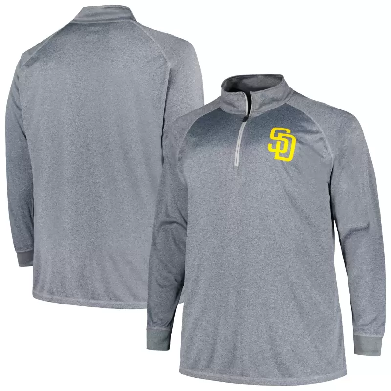 Men’s San Diego Padres Profile Gray Big & Tall Raglan Quarter-Zip Top
