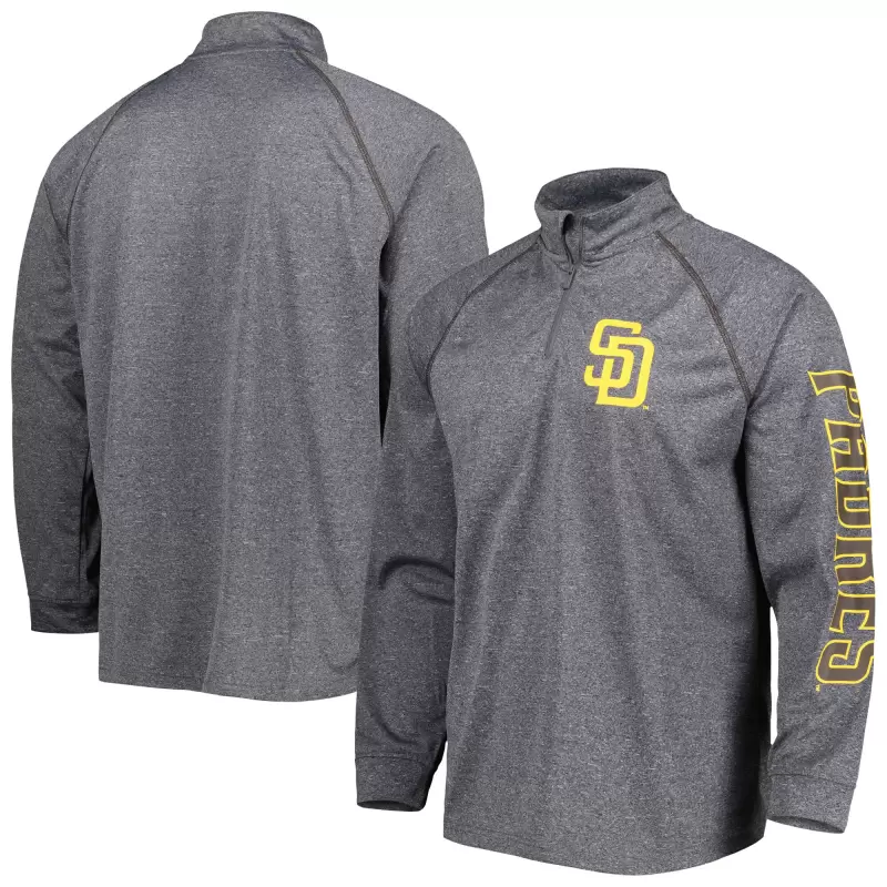 Men’s San Diego Padres Stitches Heather Gray Wordmark Raglan Quarter-Zip Top