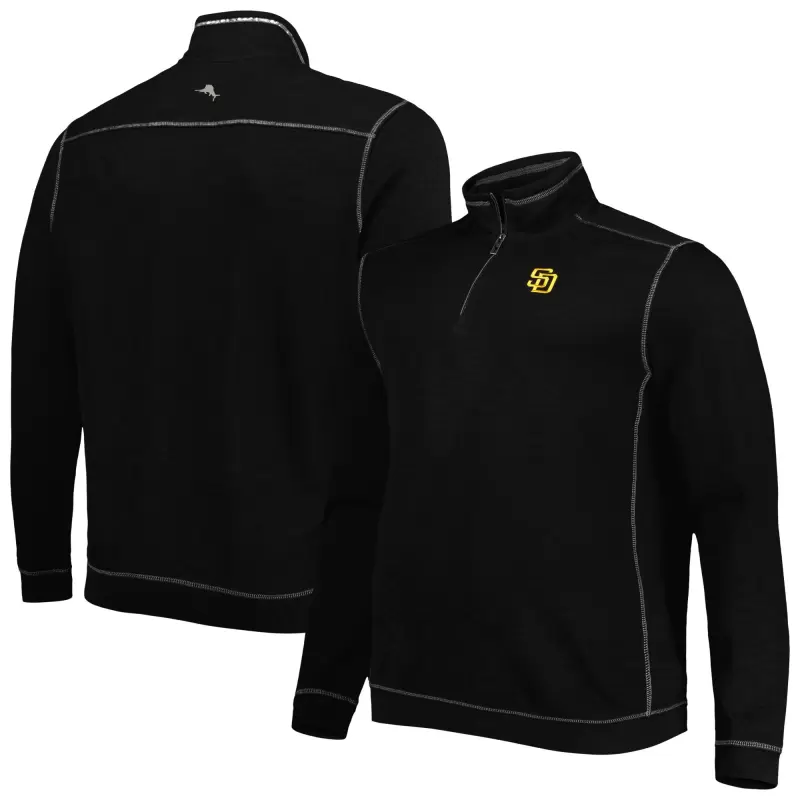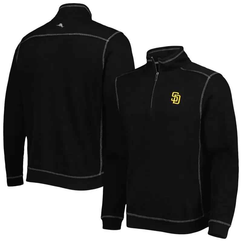 Men’s San Diego Padres Tommy Bahama Black Tobago Bay Tri-Blend Quarter-Zip Sweatshirt