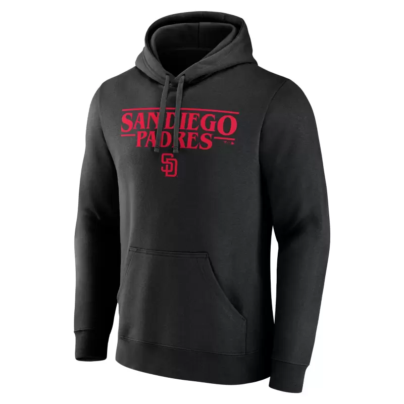 Men’s San Diego Padres Black Stranger Things Logo Lockup Pullover Hoodie
