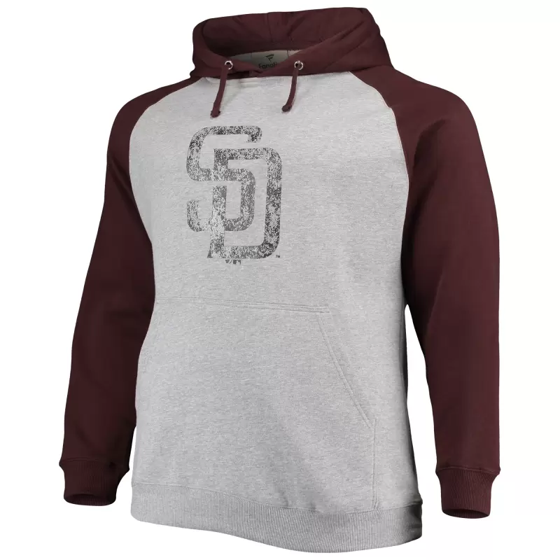 Men’s San Diego Padres Fanatics Heathered Gray/Brown Big & Tall Raglan Pullover Hoodie