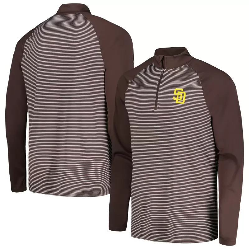 Men’s San Diego Padres Levelwear Brown Charter Striped Raglan Quarter-Zip Top