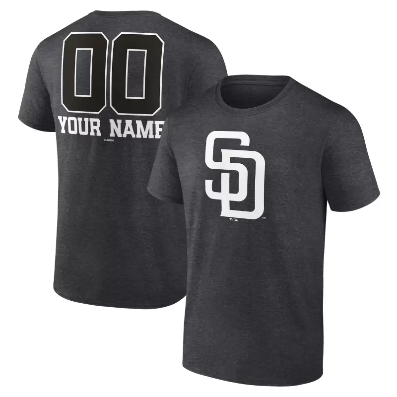 Men’s San Diego Padres Charcoal Personalized Monochrome Name & Number T-Shirt