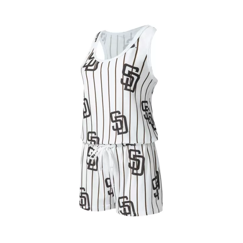 Women’s San Diego Padres Concepts Sport White Reel Pinstripe Knit Romper