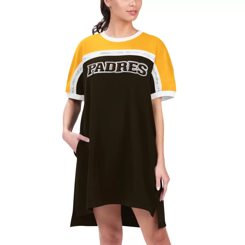 Women’s San Diego Padres G-III 4Her by Carl Banks Brown/Gold Circus Catch Sneaker Dress