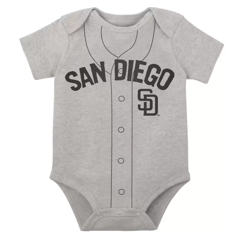 Your little one looks ready to take the pitcher’s mound each time they wear one of these adorable San Diego Padres bodysuits. This Little Slugger set features two bodysuits with spirited San Diego Padres graphics that make game day even more exciting. A lap shoulder neckline and snap closure promote quick and easy dressing.