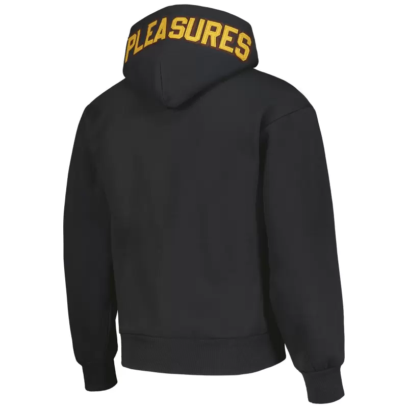 The Men’s PLEASURES Black San Diego Padres Opening Day Full-Zip Hoodie is the ultimate way to show unwavering support for the San Diego Padres. Crafted from a soft cotton and polyester blend, this midweight hoodie ensures comfort and warmth on chilly game days. The sewn-on felt applique and branding across the back proudly display Padres pride, while two front pockets provide ample storage. Whether cheering from the stands or showing support, this hoodie represents the San Diego Padres in style.