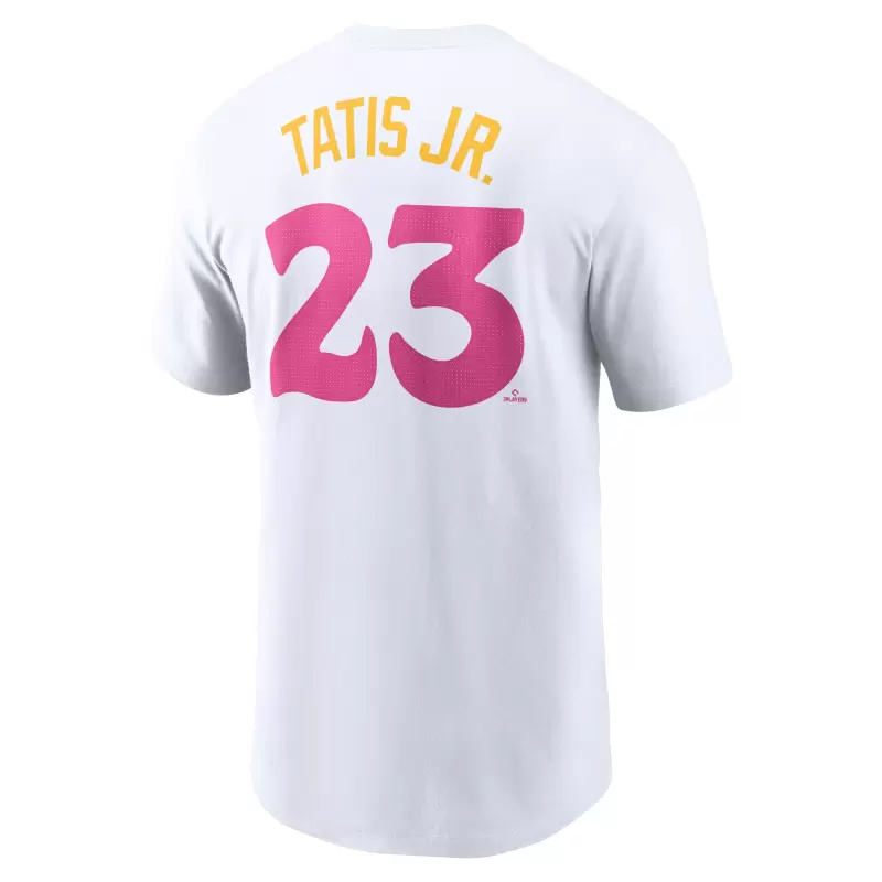 Root for your favorite San Diego Padres player in a locally inspired design with this Fernando Tatis Jr. City Connect Fuse Name & Number T-Shirt by Nike. It features printed details that represent the team’s unique culture and devoted community. Lightweight cotton fabric keeps you comfortable all day in this solid Fernando Tatis Jr. tee.
