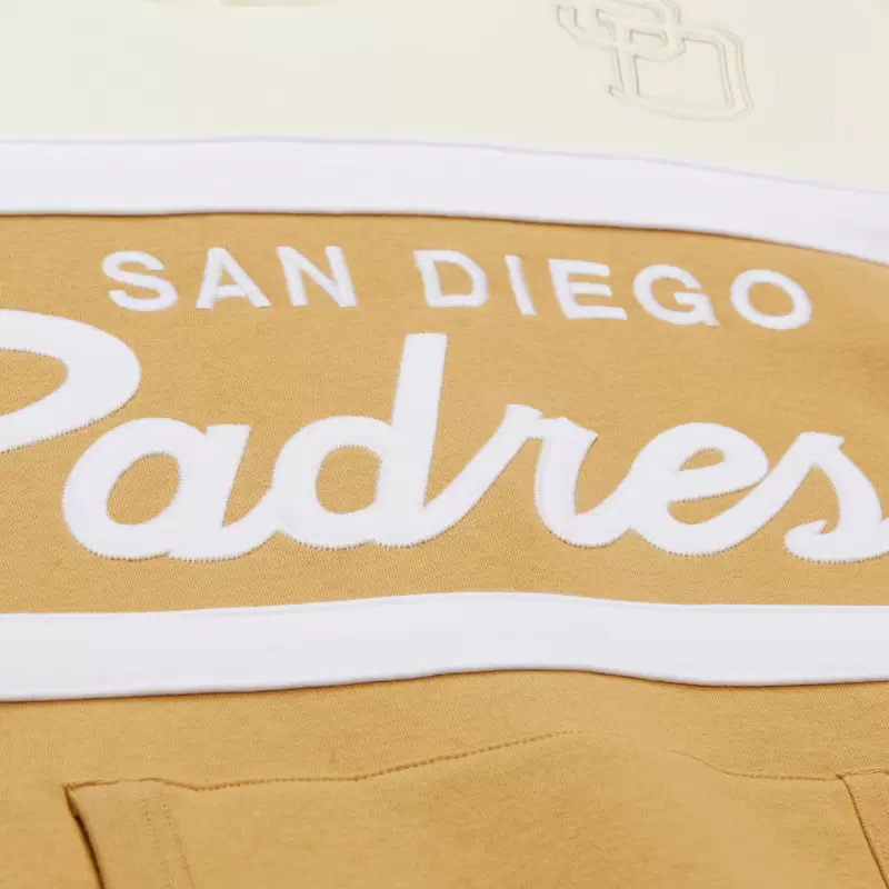Head to the ballpark on those crisp evenings while showing off your San Diego Padres pride in this Head Coach Pullover Hoodie from Mitchell & Ness. The fleece lining and midweight construction make it ideal for moderate temperatures. With embroidered fabric appliqué graphics and a sewn-on color stripe design, it delivers a stylish look that embodies the spirit of San Diego Padres baseball.
