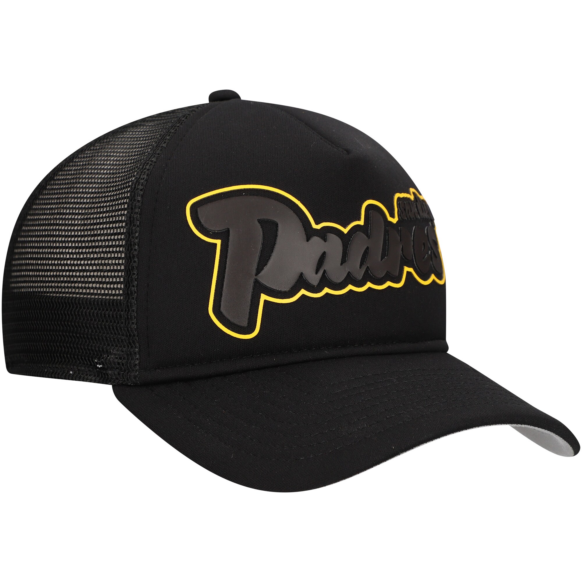 Rock a vintage look while repping the San Diego Padres with this New Era Retro Bold A-Frame Trucker 9FORTY Adjustable Hat. This hat features a bold, heat-sealed rubber applique of the team’s script on the front panel, making a statement whether you’re at a San Diego Padres game or out on the town. With its unique A-Frame design merging the front two crown panels, this hat creates a high-profile, pinched shape for an unmistakable retro look.