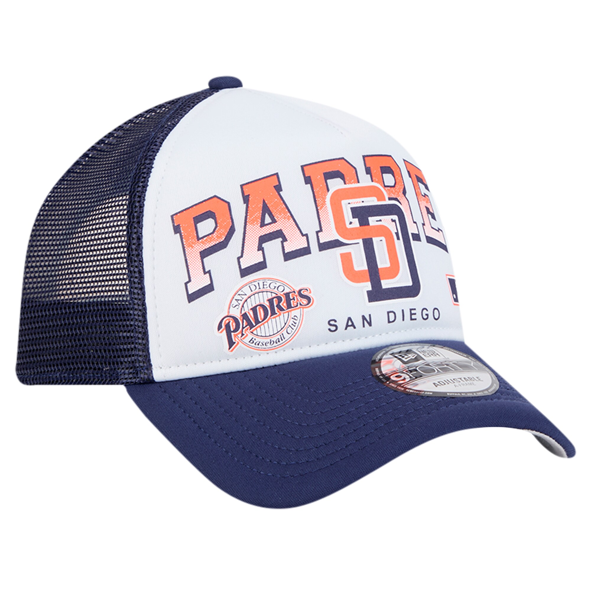Home / Shop / Adjustable / Men’s San Diego Padres New Era White Retro Wordmark 9FORTY A-Frame Trucker Adjustable Hat